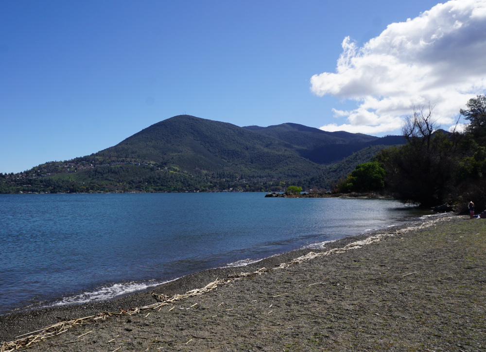 Their lunch stop was at the swim beach, with its imposing view of Mount Konocti and Soda Bay.
