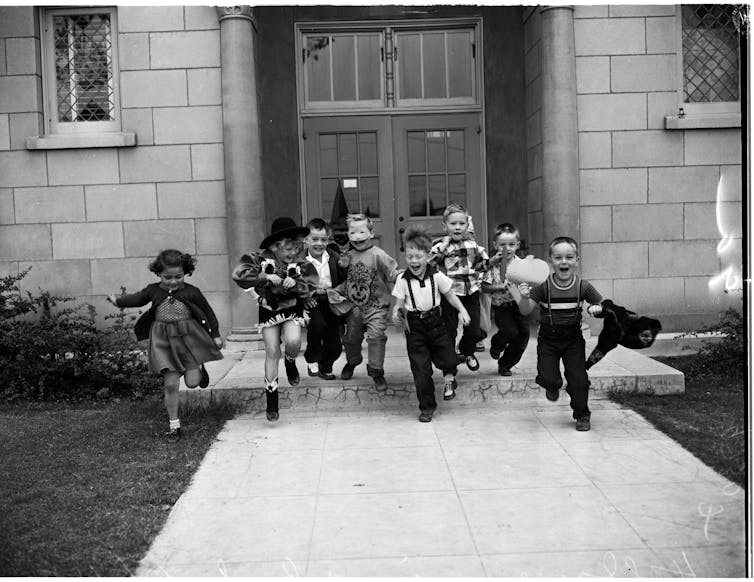 As the Irish integrated into American society, Halloween was reinvented again, this time as an all-American celebration. It became a holiday primarily for kids. Its religious overtones faded, with supernatural saints and sinners being replaced by generic ghosts and goblins. Carved turnips gave way to the pumpkins now emblematic of the holiday. Though trick-or-treating resembles ancient traditions like guising, where costumed children went door to door for gifts, it’s actually an American invention, created to entice kids away from rowdy holiday pranks toward more wholesome activities.