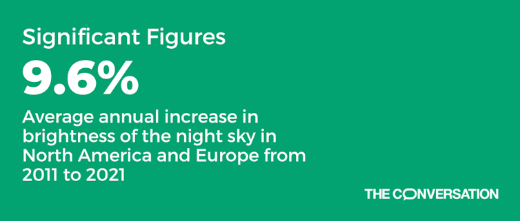 The data shows that the night sky got, on average, 9.6% brighter every year. For many people, the night sky today is twice as bright as it was eight years ago. The brighter the sky, the fewer stars you can see.
