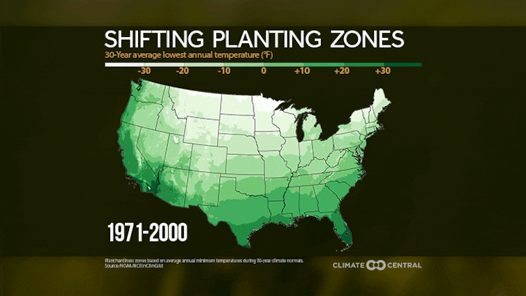 The warming is evident in changes to growing seasons, reflected in recent updates to plant hardiness zones printed on the back of seed packages. These maps show the northward and, sometimes, westward movement of freezing temperatures in eastern North America.