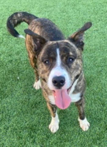 This week’s dogs include “Zero,” a 3-year-old male terrier mix with a brown brindle and white coat.