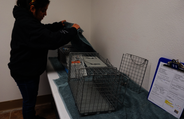 Adriana Hermosillo, an SPCA board member who is known as the “Transfer Lady,” showed the process of moving the cats to the cages.