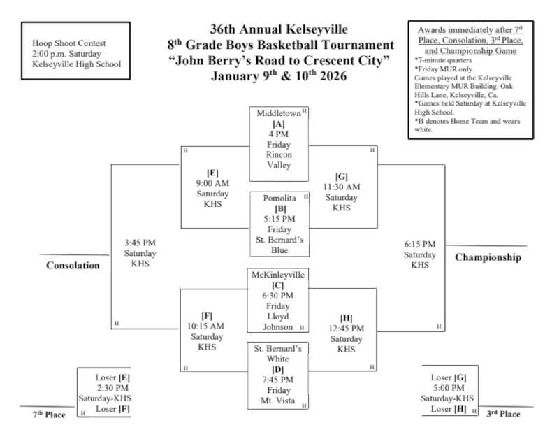 KELSEYVILLE, Calif. — Kelseyville is proud to welcome teams, families and fans for the 36th Annual John Berry’s Road to Crescent City Junior High Basketball Tournament taking place Friday, Jan. 9, and Saturday, Jan. 10.