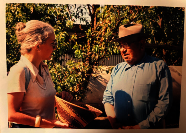During her visits to Lake County, Sally McLendon spoke with Pomo elders, including Ralph Holder, shown here during a trip in the 1970s. In addition to her linguistics work, McLendon contributed important studies of Indigenous California community histories and the Pomo basketmaking tradition. Courtesy of Annabella Pitkin.