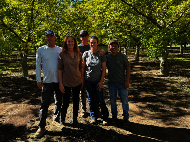 Colleen Seely Rentsch joined her daughter, Jessica Rentsch Mihalenko, and son-in-law, Jordon Mihalenko, third and fourth generation farmers, to host the group at their Upper Lake orchard to walk amongst the trees and learn how the walnuts are harvested.