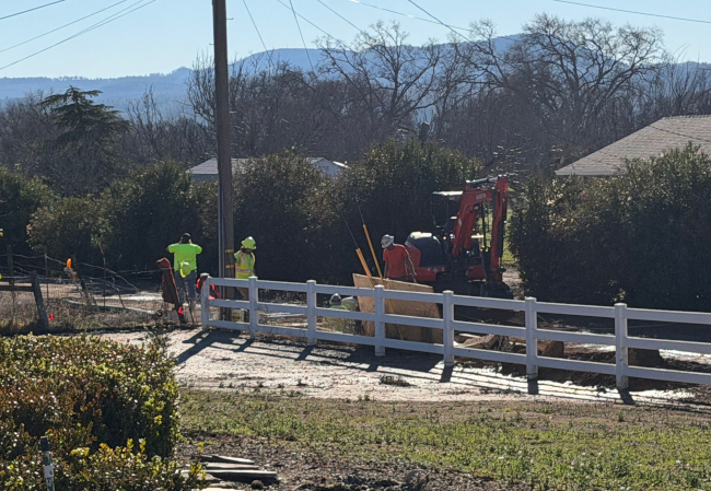 A crew works on repairs in the spill area on Wednesday, Jan. 14, 2026, in Clearlake, California. Photo by Lingzi Chen/Lake County News.
