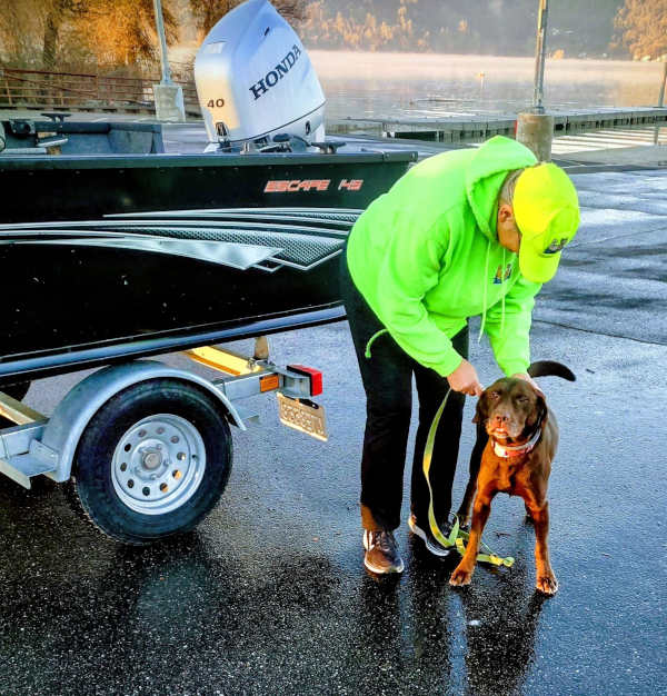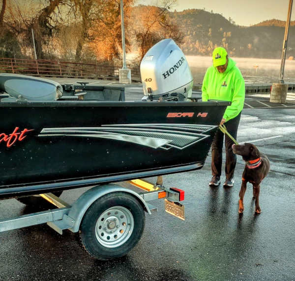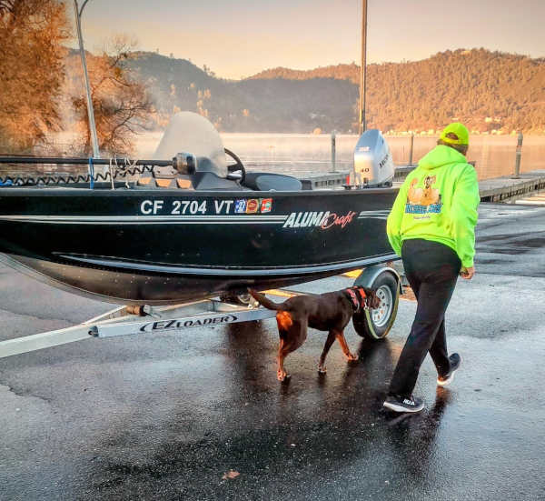 When she isn't working the major bass tournaments hosted at Clear Lake, Edna stays at the Mussel Dogs facility in Ukiah.