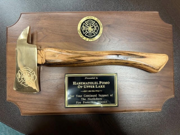 UPPER LAKE, Calif. — Northshore Fire Protection District has presented a plaque to the Habematolel Pomo of Upper Lake honoring the tribe’s outstanding partnership, generosity and continued support of fire protection and community safety initiatives.